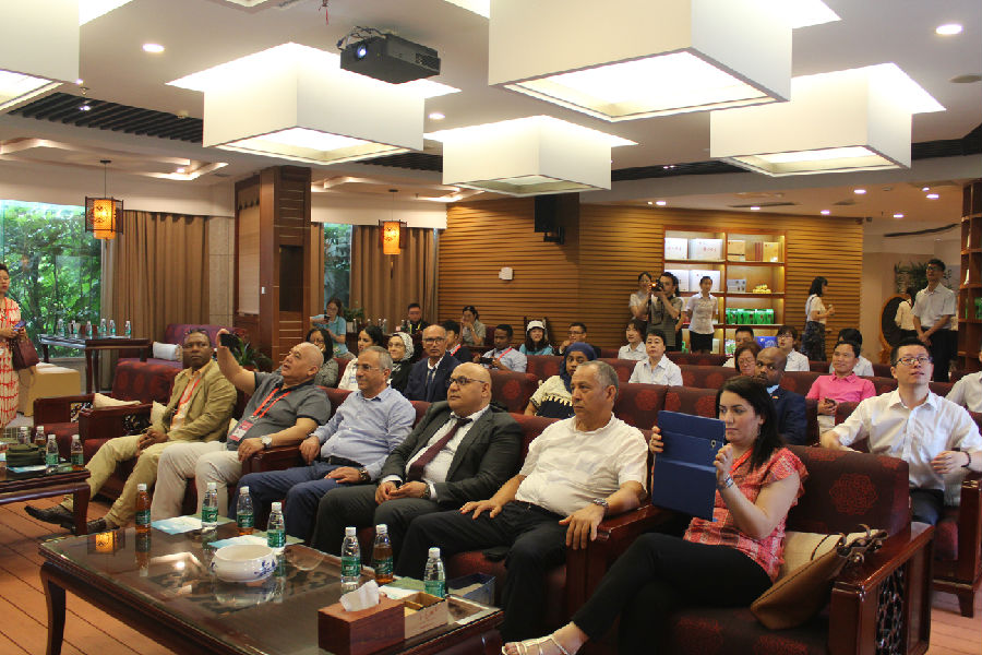 公司負(fù)責(zé)人代表公司向遠(yuǎn)道而來的非洲貴賓致以熱烈的歡迎和衷心感謝。他表示,非洲是中國茶葉貿(mào)易的傳統(tǒng)地區(qū),公司自獲得進(jìn)出口權(quán)以來,十分重視與非洲的茶葉外貿(mào)和交流,主動“走出去”,結(jié)識了許許多多的非洲朋友,與非洲大部分國家的茶葉企業(yè)建立了長期穩(wěn)定的貿(mào)易合作關(guān)系,近年來,公司在非洲出口茶葉年平均金額約2000萬美元。此外,公司還在省政府以及省商務(wù)廳、省農(nóng)業(yè)農(nóng)村廳、市商務(wù)局等有關(guān)部門的組織下,每年都會到非洲主要城市參加展會,走出湖南,擴(kuò)大與非洲各國的經(jīng)貿(mào)交流,深化與非洲各國友誼,如今年5月份,公司就陪同了湖南省隋忠誠副省長到了摩洛哥開展了推介活動,受到了摩洛哥的貿(mào)易伙伴及合作企業(yè)的熱情接待,反響熱烈,起到了很好的效果。習(xí)總書記指出,“以茶為媒、以茶會友,交流合作、互利共贏”,公司將始終不忘初心,按照湖南省委杜家毫?xí)浽诠菊{(diào)研時所做指示精神,進(jìn)一步加強(qiáng)市場開拓力度,創(chuàng)新模式,推動“湘品出湘”。公司將與非洲的貿(mào)易合作企業(yè)團(tuán)結(jié)一心,攜手共進(jìn),進(jìn)一步加大品牌、市場以及資本的合作力度,全面深化經(jīng)貿(mào)交流和合作,為中非經(jīng)貿(mào)發(fā)展和友誼升華做出自己應(yīng)有貢獻(xiàn)。