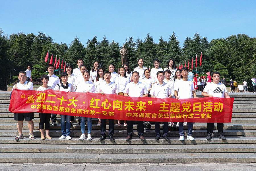 為慶祝中國共產(chǎn)黨成立101周年,進一步弘揚革命傳統(tǒng),賡續(xù)紅色血脈,增強基層黨組織和黨員的凝聚力、戰(zhàn)斗力,迎接黨的二十大勝利召開,7月16日,集團行政一支部、集團行政二支部全體黨員、入黨積極分子、黨員發(fā)展對象共25人前往韶山聯(lián)合開展主題黨日活動。與會人員瞻仰了東方紅廣場毛澤東銅像,并在湖南省韶山茶業(yè)有限公司會議室召開“喜迎二十大·紅心向未來”主題座談會。