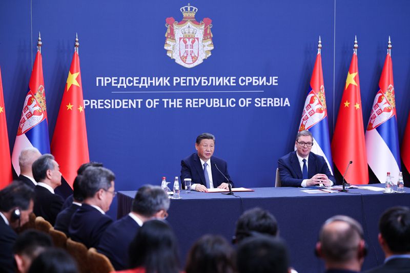 習(xí)近平首先代表中國(guó)政府和中國(guó)人民,向武契奇總統(tǒng)和塞爾維亞政府和兄弟般的塞爾維亞人民致以誠(chéng)摯問候。
