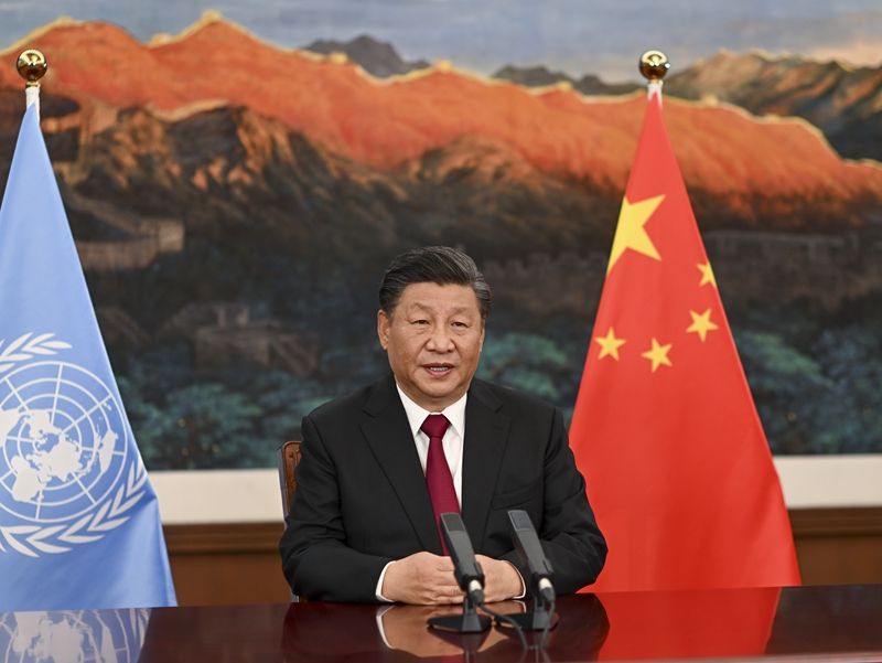 2021年10月12日,習(xí)近平主席以視頻方式出席《生物多樣性公約》第十五次締約方大會(huì)領(lǐng)導(dǎo)人峰會(huì)并發(fā)表主旨講話。新華社記者 李學(xué)仁 攝