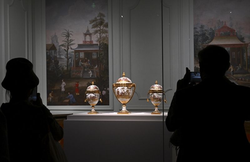 2024年4月1日,觀眾在北京故宮參觀“紫禁城與凡爾賽宮——17、18世紀的中法交往”展覽。新華社記者 金良快 攝